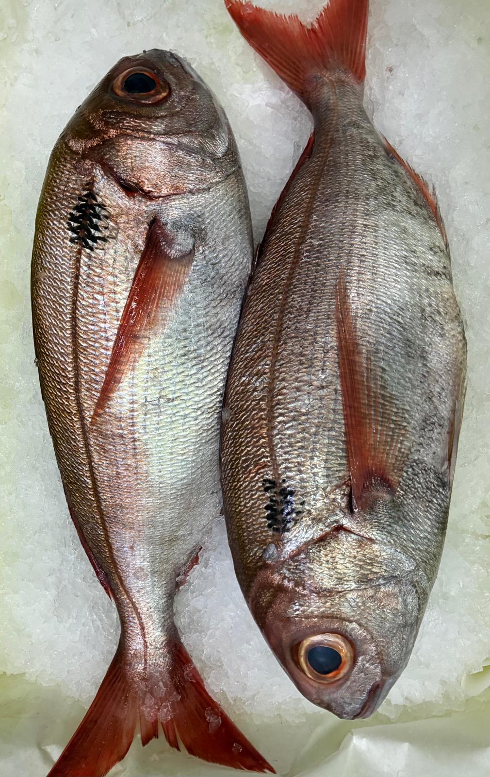 El besugo es un pescado azul muy apreciado por su carne firme, blanca y sabrosa. Tiene un sabor delicado y característico, ideal para asar al horno o a la parrilla. Es un pescado tradicional en celebraciones y destaca por su textura tierna y jugosa.